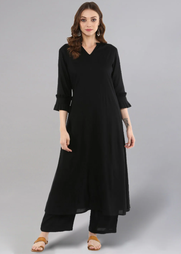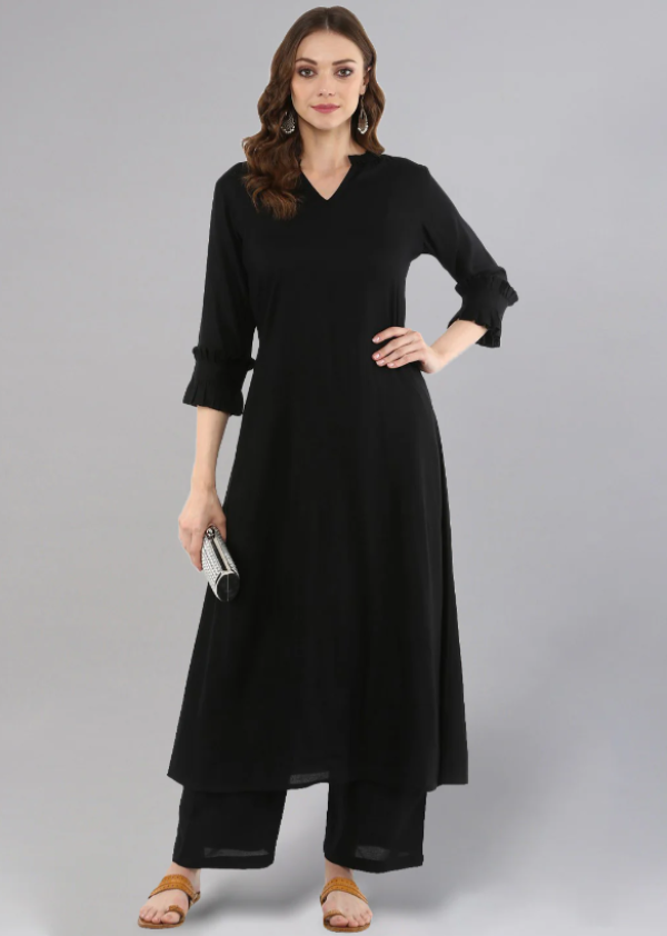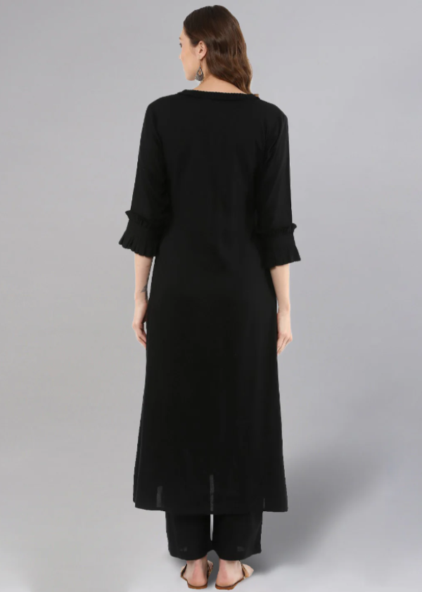 Simple yet stylish, this black cotton kurta set offers timeless elegance and everyday comfort—perfect for casual wear or minimal festive looks.