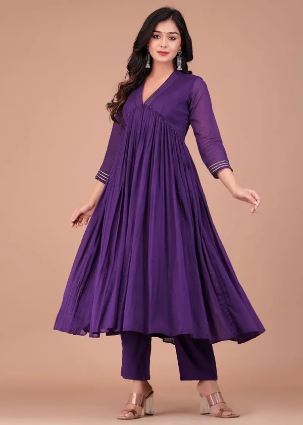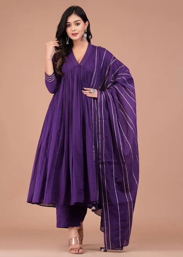Boshon Purple Mulmul Anarkali Suit Set