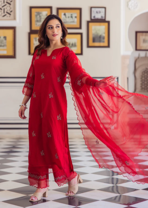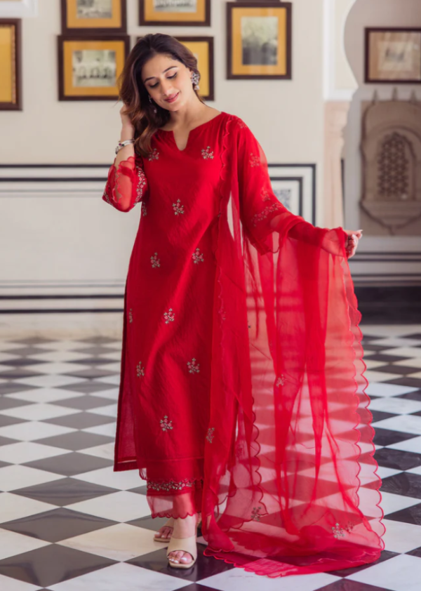 Boshon Radhika Red Embroidered Chanderi Suit Set