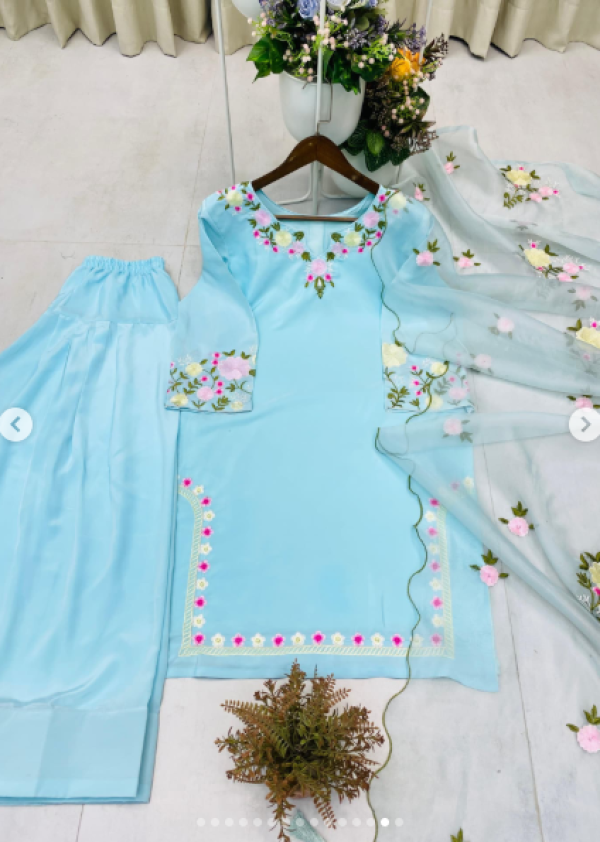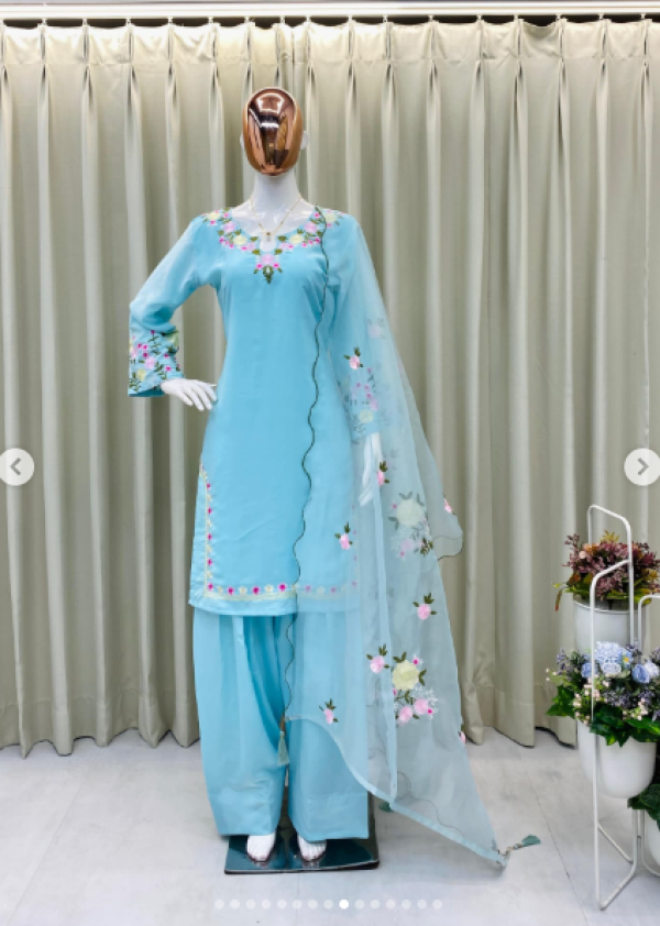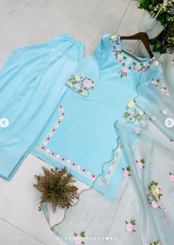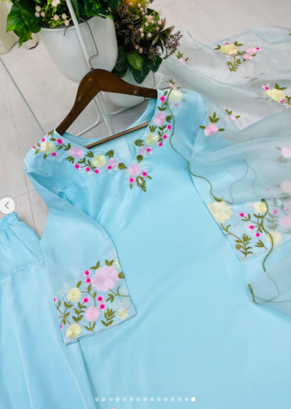 Name : Boshon Sky Blue Embroidery Kamiz Set