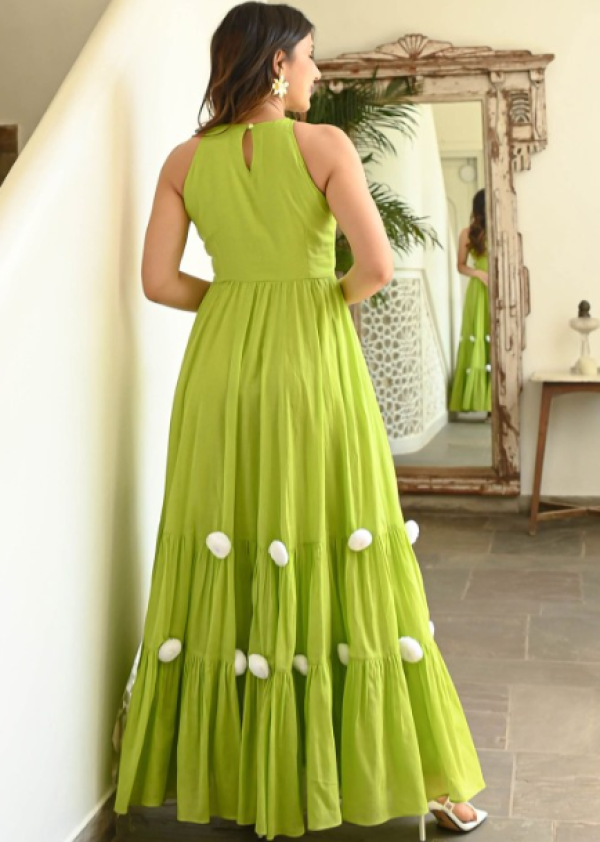 A fresh and flattering look for every occasion—this green cotton one-piece dress blends comfort with everyday elegance, tailored just for you.
