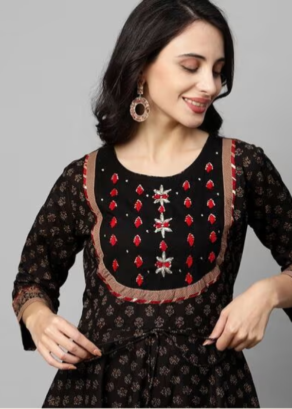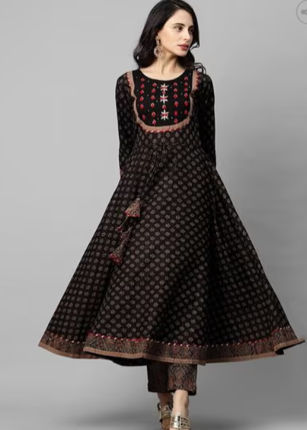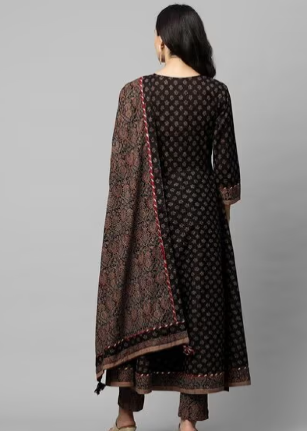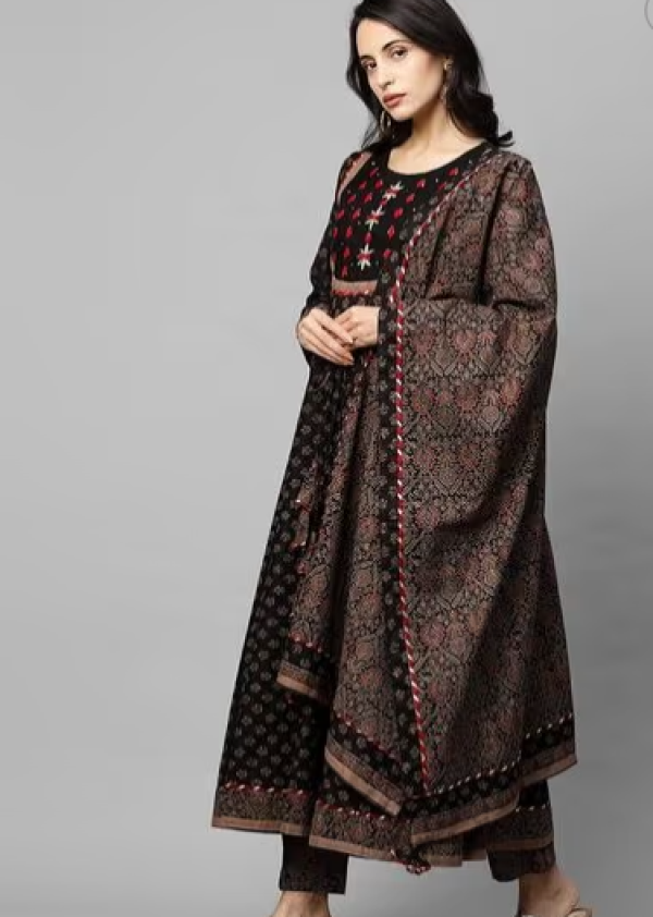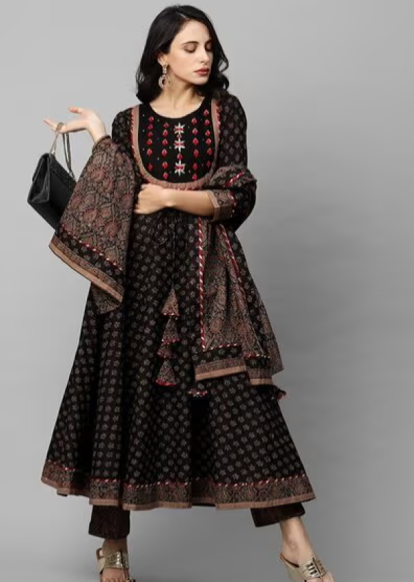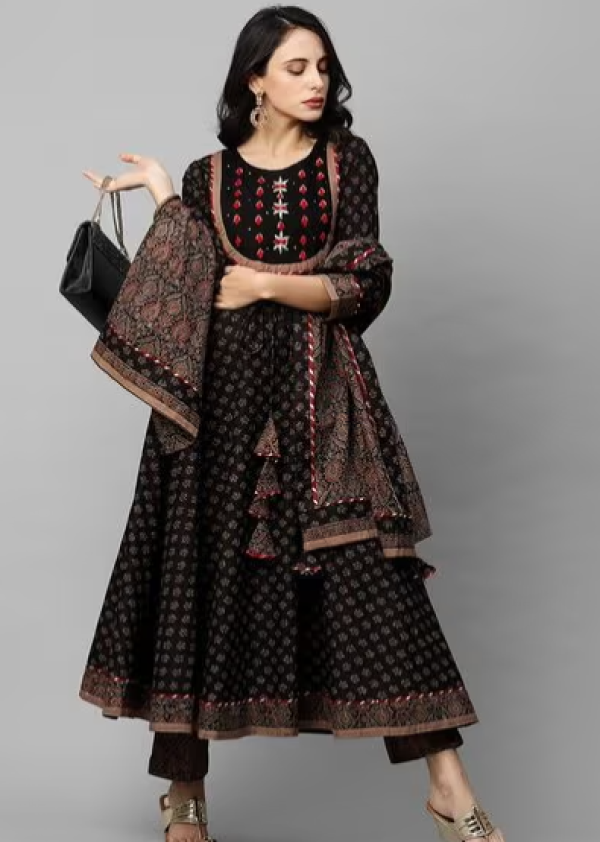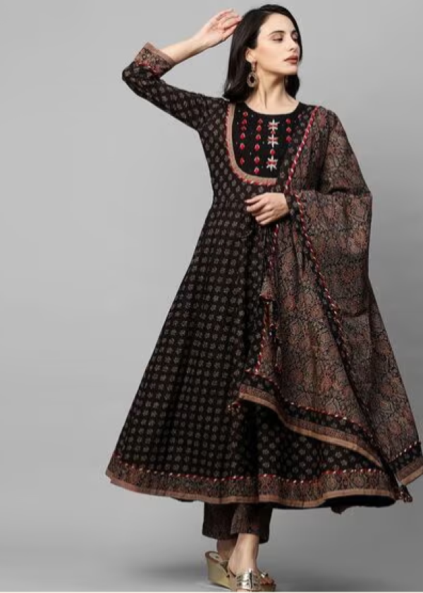 Floral Print Anarkali Kurta with Pants & Dupatta.