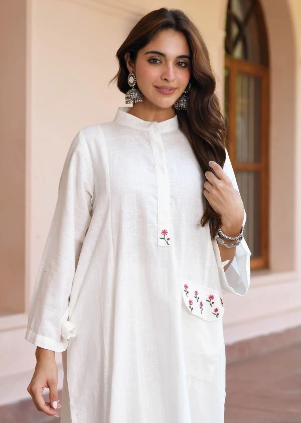 Noorani Embroidered Kurta Set – Classic White
