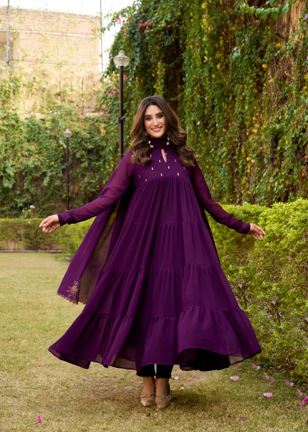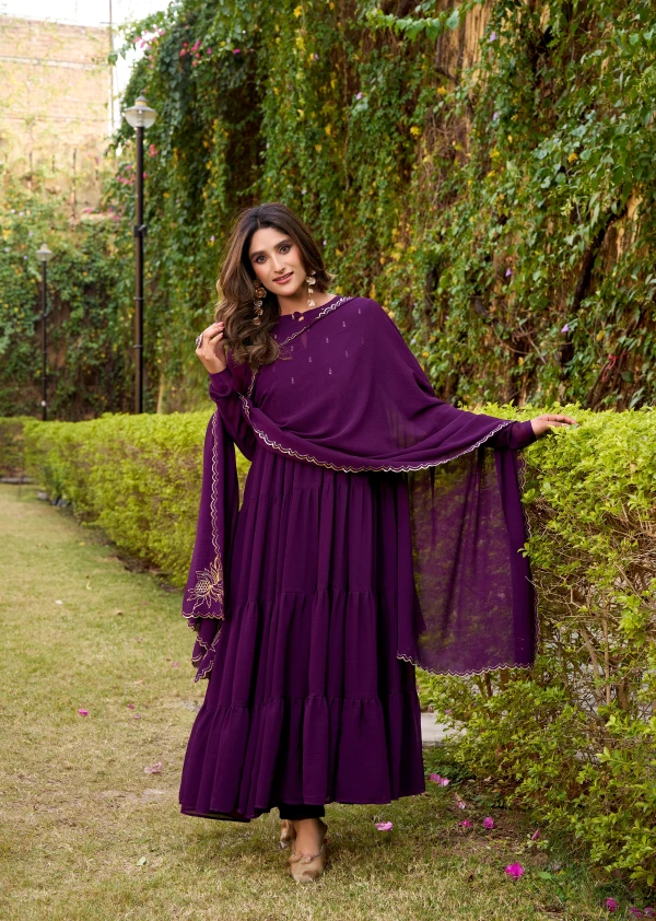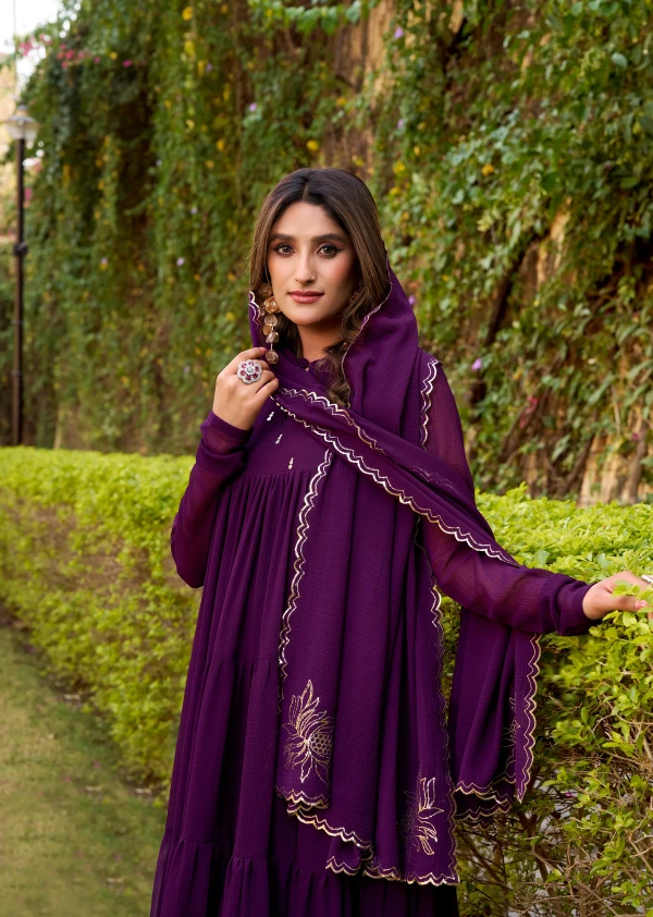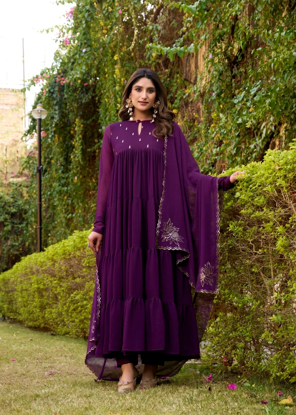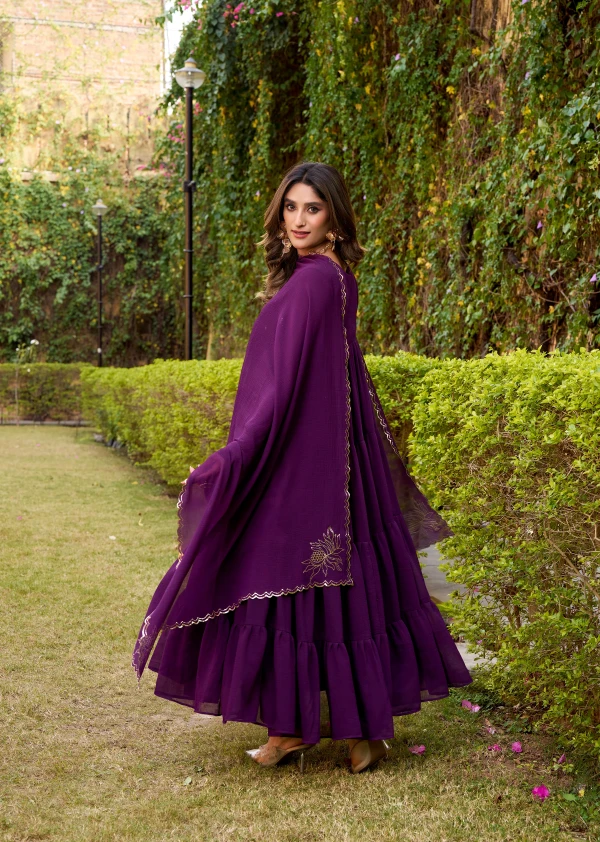 Purple Hand Embroidery Anarkali Suit Set with Dupatta